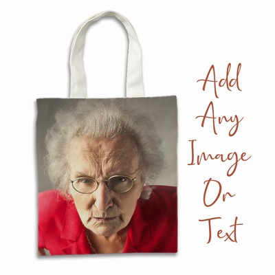 Personalized tote bag with a picture. It is useful for carrying in hand or over the shoulder. The wide-width straps are flat and comfortable. It is an interesting personalized gift for Grandma.