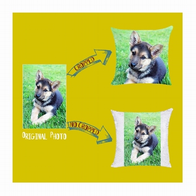 Personalized photo/text flip sequin pillow. The sequins of the pillow are flipped by hand to show or hide the photo/text. This customized image/text flip sequin pillow is a fashion gift for the couple.